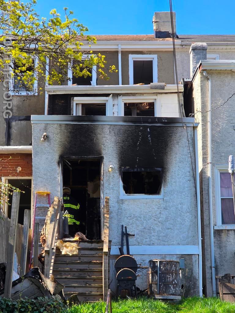Assistant Chief 27 arrived to find fire showing from the rear of a 3 story MOR dwelling. Station 27 units arrived quickly and immediately went im service with fire suppression and searches of the fire building.