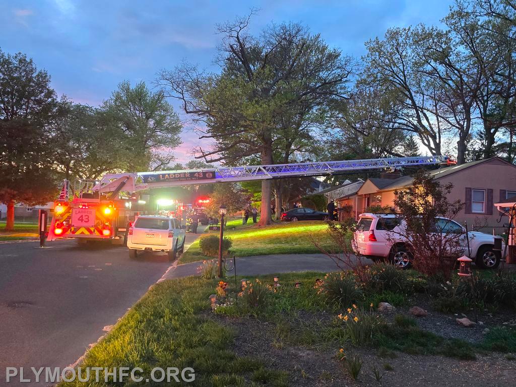 On Friday evening 4/17, station 43 were dispatched to the unit block of Corson Road in Whitemarsh Township to assist on a reported dwelling fire. Ladder and Chief 43 responded arriving as the first due truck company. The operator threw the main to the roof while the crew checked the roof and opened up on the interior. A small fire was found within a window and wall area and was quickly extinguished with no further extension. The company operated just over and hour before returning. |